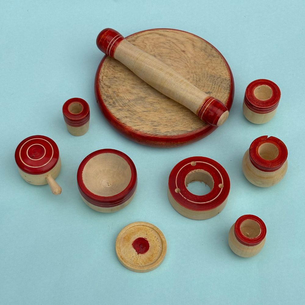 Wooden Kitchen set with Chapathi maker for kids- Random Colors Will Be Shipped