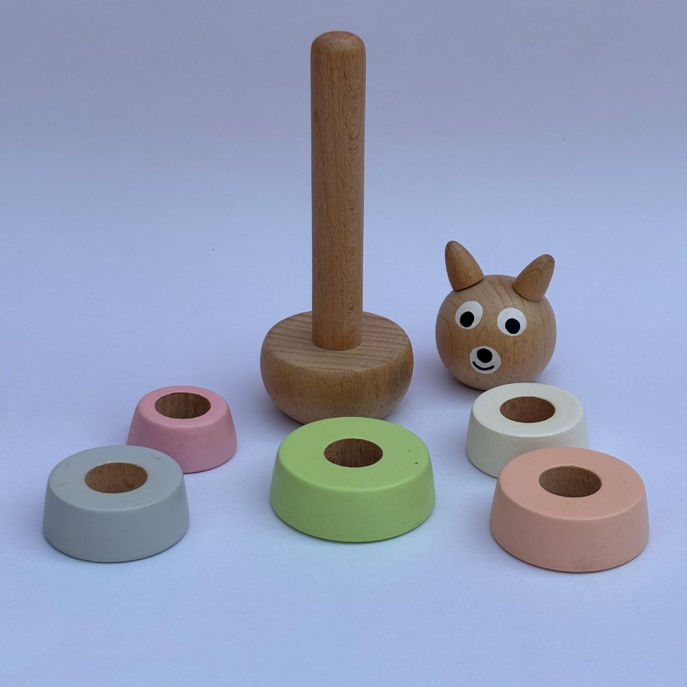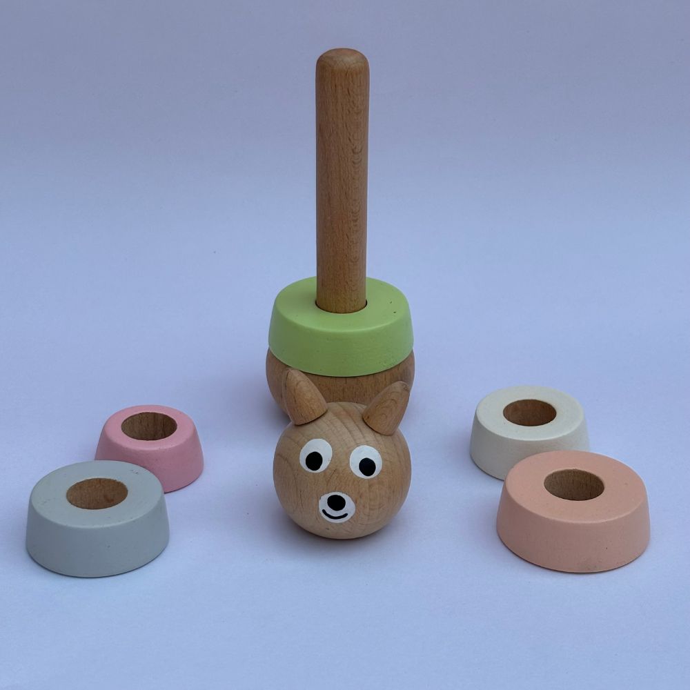 - An adorable educational toy that promotes stacking and teaches your child the differences between various colours and sizes.