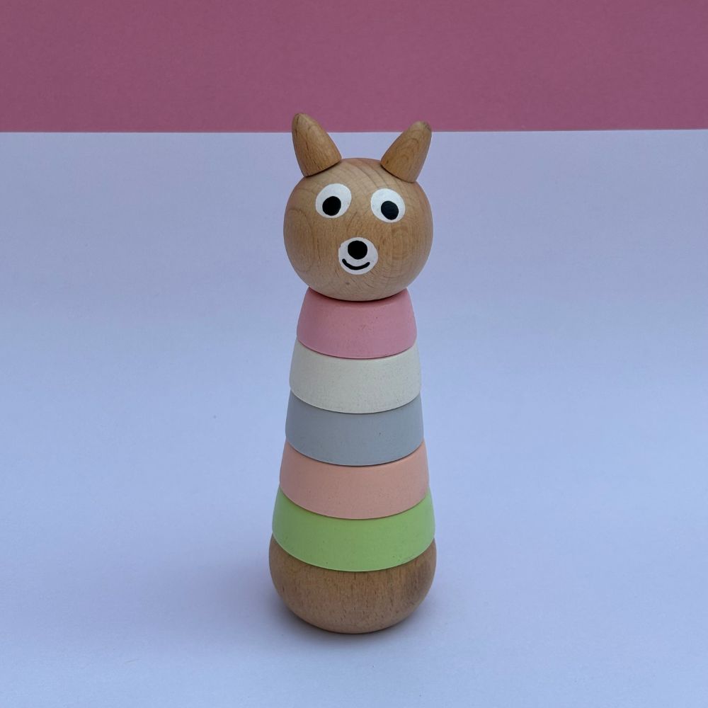 - The stacker is made with beach wood and coloured with non-toxic, eco-friendly paints.